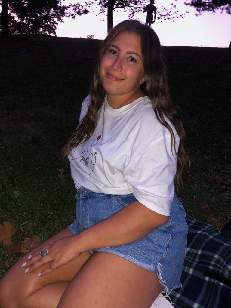To me, a white tee and jeans is the ultimate basic simple outfit in the best way possible. Whether you’re going to class, out to lunch or just hanging out with friends, this outfit can do you no wrong. Being in high school in the middle of the 2010s, jeans and white tees were all the rage. As I’ve updated my style throughout college, I’ve learned to step out of my comfort zone and try to switch out the basic white tee and jeans for something more elevated. As shown in this picture, I recently wore a cute graphic white tee from Nasty Gal and my Forever 21 high waisted jean shorts that cinch in my waist, paired with white Nike Air Force 1s. I’m all about comfort and will always prefer to wear sneakers or flat shoes over heels. My outfit makes me feel trendy and comfortable. I feel confident in my white tee and jeans because I’m the one that put the outfit together in the way I wanted it to look: chill, comfortable, laid-back and fun!!