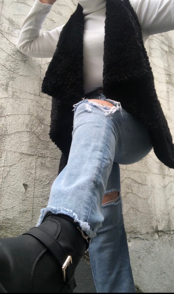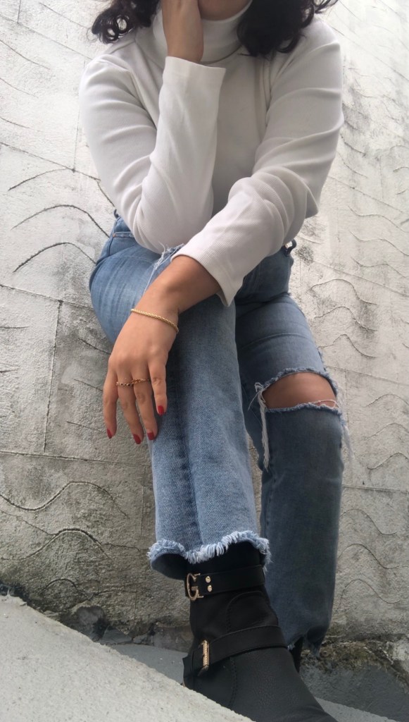 “What will I feel most confident in?” is the question I ask myself any time I choose an outfit. While it’s fun to stay on trend and push myself out of my comfort zones, nothing is more uncomfortable than fidgeting around in an outfit that doesn’t make me feel my best. This particular outfit is something I’d wear at a casual hang out, a study date or a café kind of setting on a brisk fall day. Adding a leather boot and a furry black vest adds texture to the outfit while maintaining comfort, which is super important to me on days where I might be doing a lot of walking around. I think certain pieces will never be “outgrown,” and a pair of blue jeans, a leather boot and a white top are essentials to any closet.