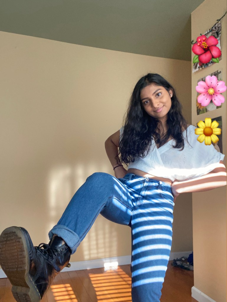 What really matters is how my clothes make me feel, and I wanna feel like I absolutely own the energies of both a cute girl and a bad bitch at the same time. That said, I think I’d define my personal style as somewhere between simple and experimental. For this outfit, I chose to keep it simple. A crisp white t-shirt and indigo jeans never fail to make me feel clean and casual and laid-back and polished, which is usually what I go for. And to *add a little spice*, I tucked my shirt into my bra, which has been my go-to fashion tip for about a year now — seriously, try it.
