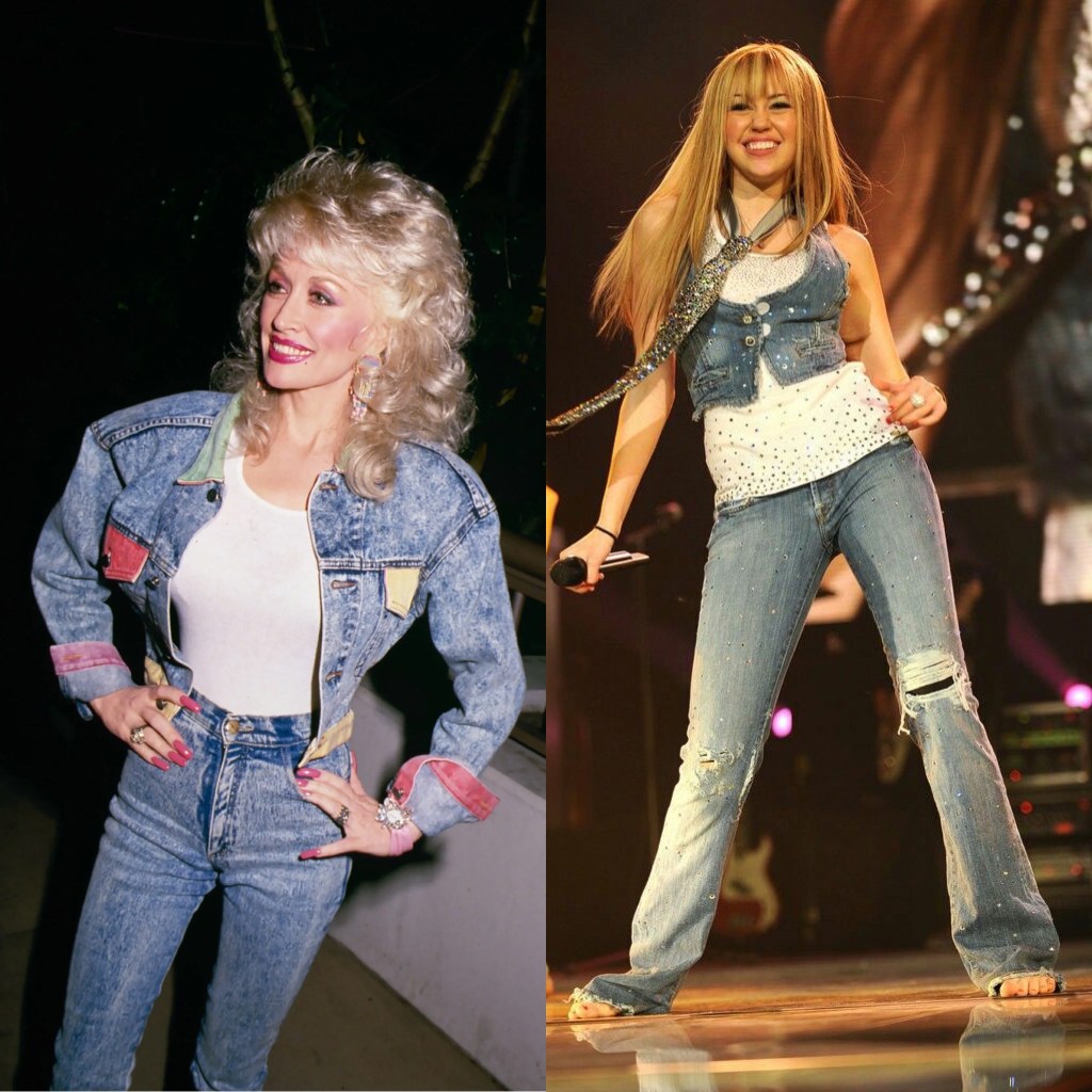Next, let’s talk about the outfits. Hannah and Parton consistently deliver country glam realness that is hard to find anywhere else. Studded blue jeans, cowboy boots, cropped tops and bold prints heavily define some of their most iconic looks.