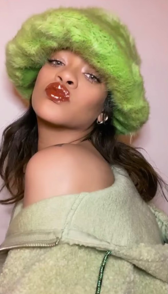 Last week, the Fenty Beauty founder unveiled a video of herself trying on the brand’s new Gloss Bomb Cream Color Drip Lip Creams, which launched earlier this month. It’s no surprise that this fashion icon can sell anything she’s spotted in, and as much as I want to swipe that Gloss Bomb Cream across my lips ASAP, Rihanna’s fuzzy green bucket hat and matching fleece sweatsuit are what initially caught my eye.