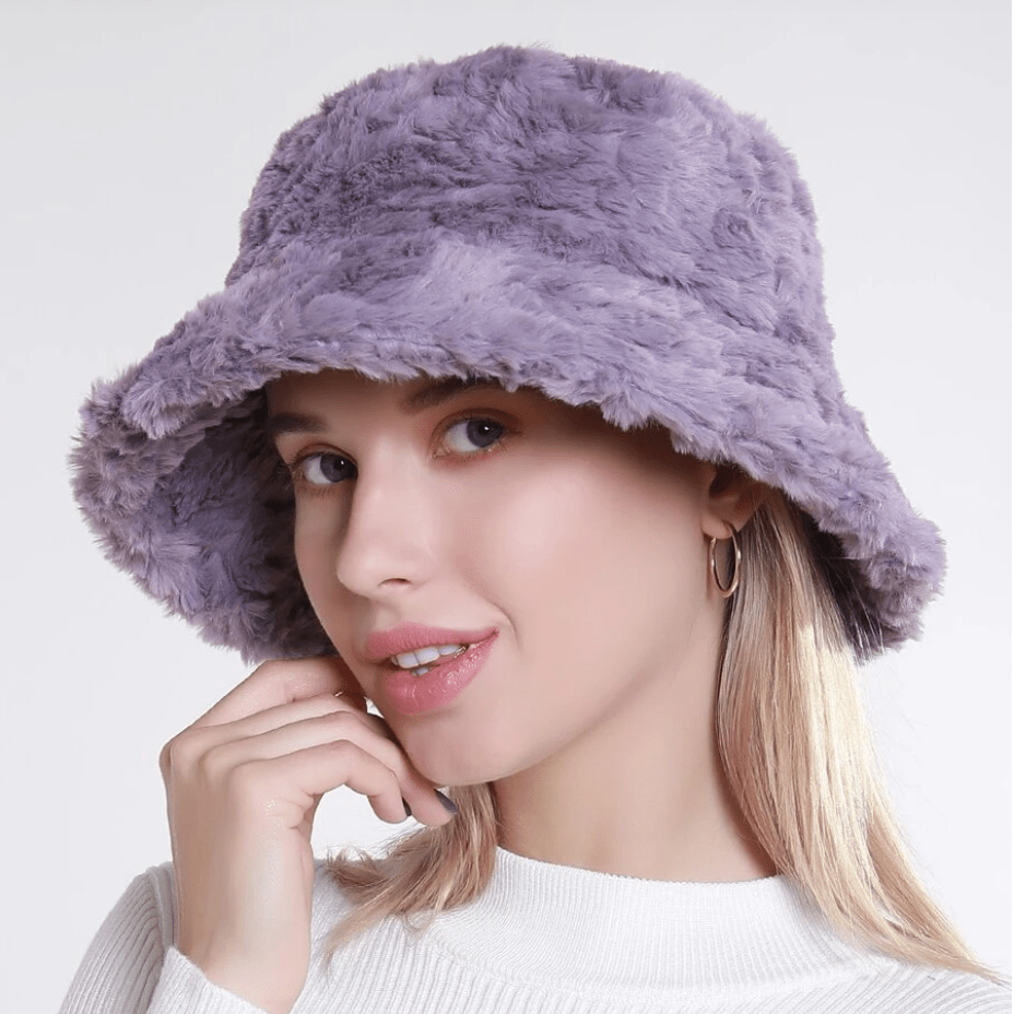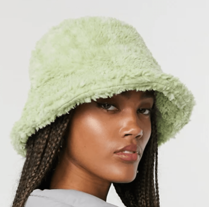Rihanna looks cozy AF wearing the Emma Brewin tonal faux-fur bucket hat, $419. Browse through similar hats at a more affordable price point below.
